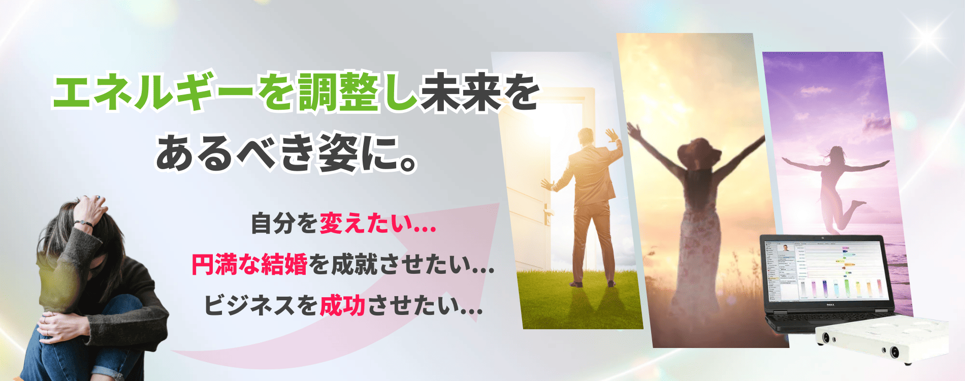 悩みの根本原因を特定し、波動調整によって最適な状態へ導き、願望実現をサポートします。